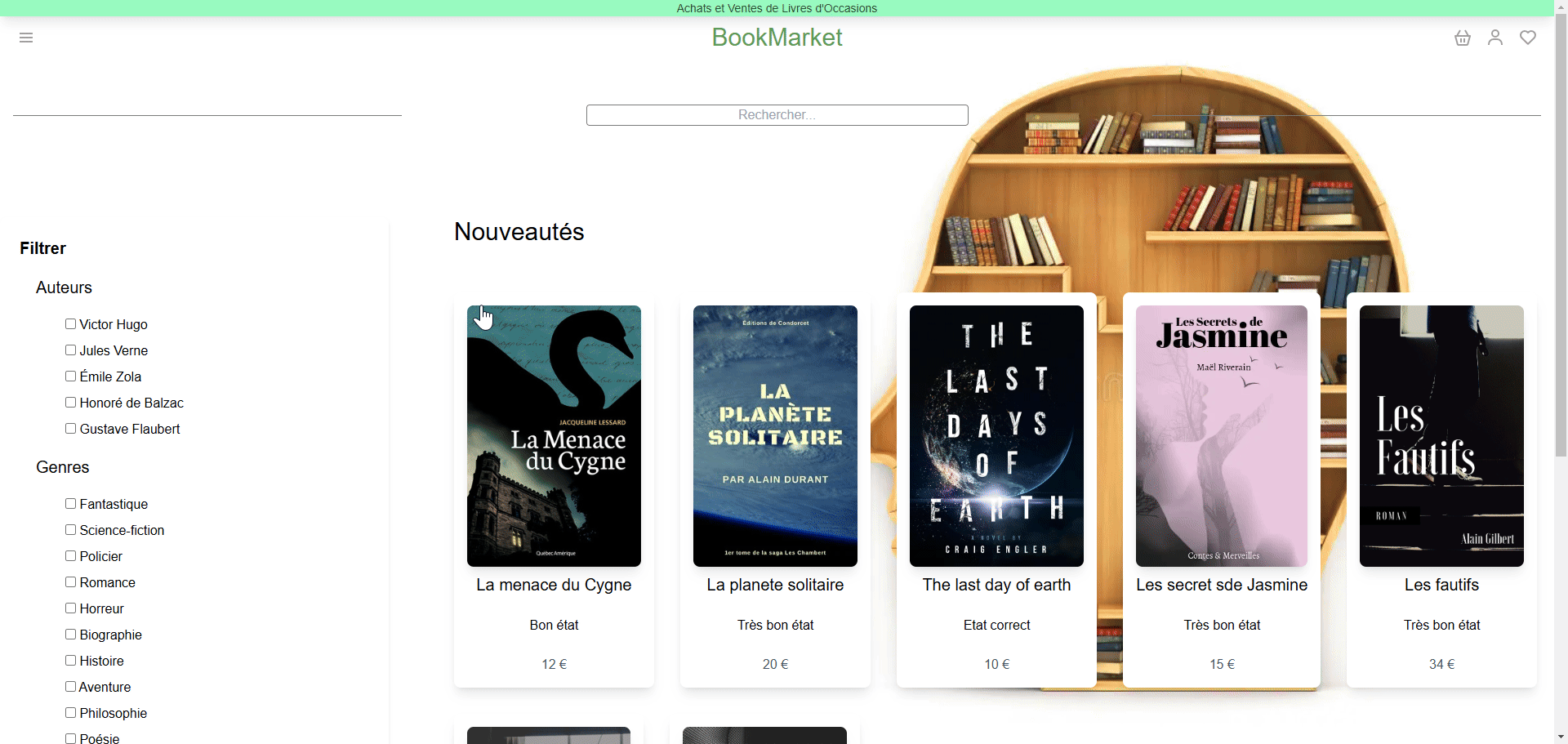 Un site web de vente et rachat de livres d’occasion, en PHP POO TailwindCSS et MySql permettant aux utilisateurs de vendre et acheter des livres d’occasion. Deux espaces distincts : un pour les vendeurs et un pour les acheteurs qui peuvent parcourir et acheter.